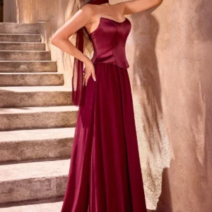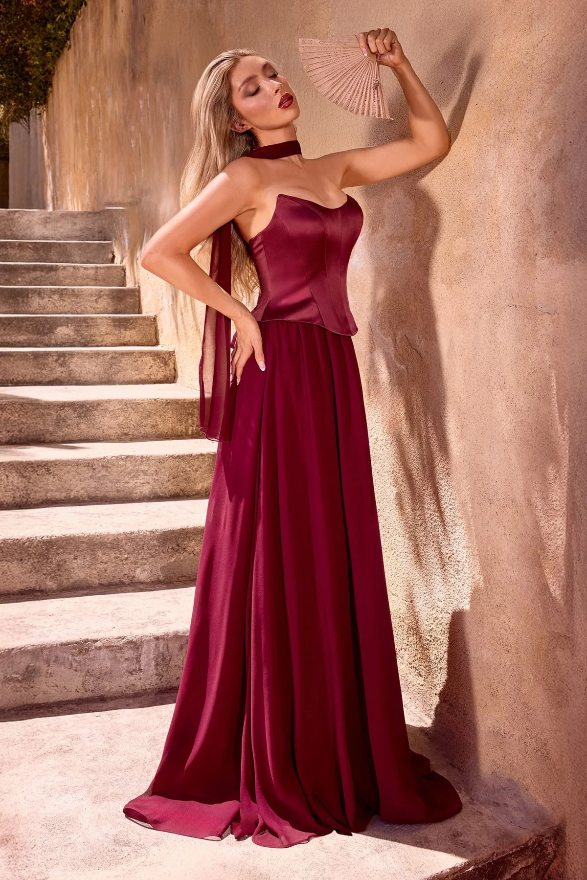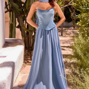 Diseñado con una sofisticación moderna, este vestido de gasa con silueta en línea A presenta un corsé estructurado con un escote suavemente curvado y elegantes costuras de detalle. La falda fluida de gasa aporta un movimiento elegante, mientras que una bufanda transparente desmontable realza su encanto etéreo. Con líneas limpias y una silueta favorecedora, este vestido es una opción refinada para damas de honor, invitadas a bodas o cualquier ocasión formal.